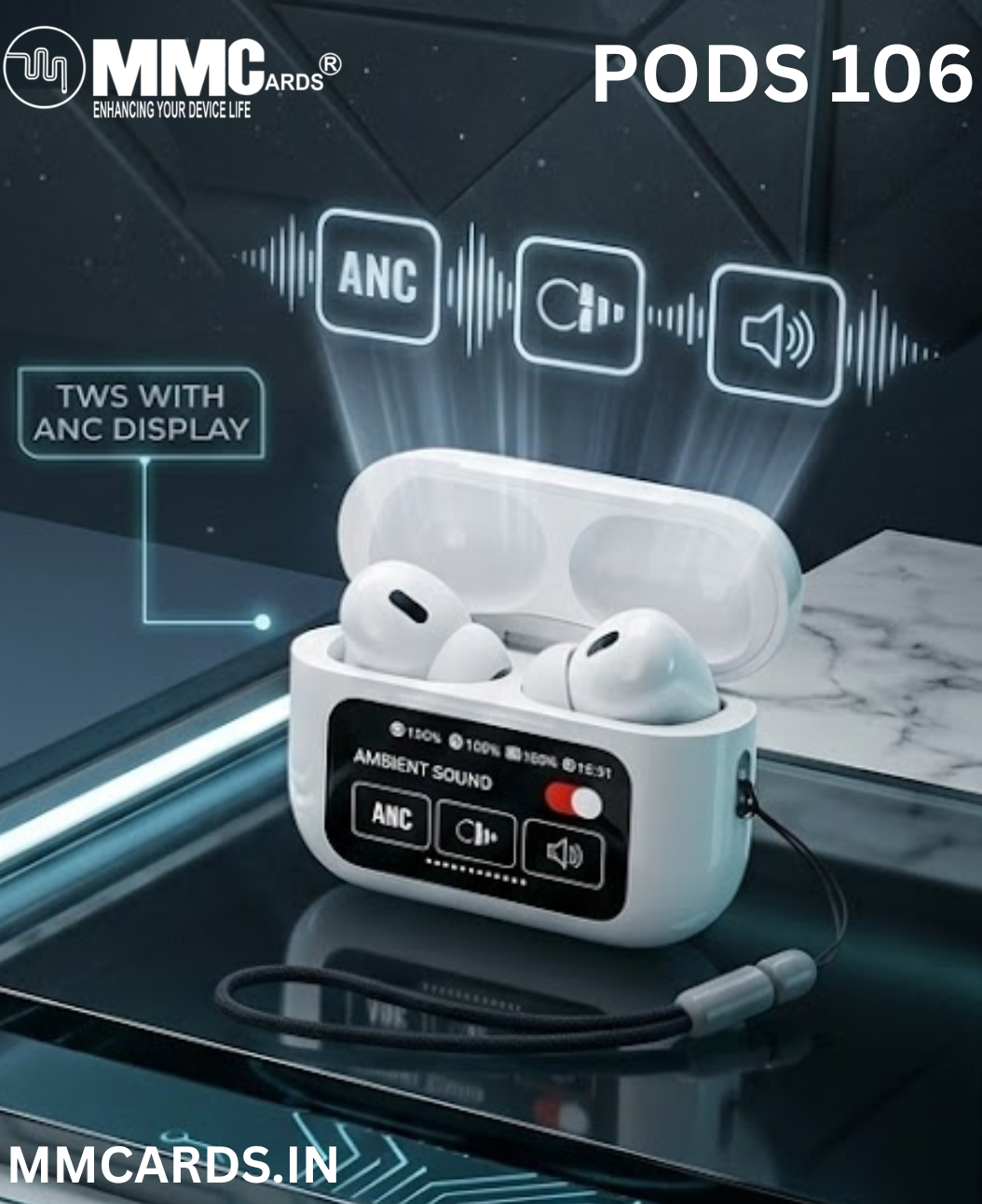 Upgrade your audio experience with the all-new MMC Pods 106, designed for style, performance, and convenience. Featuring an advanced touch display case, these earbuds bring a modern twist to your everyday listening.